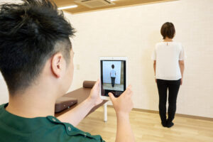 その後、視診や触診を通じて、膝関節の可動域、周囲の筋肉の状態、全身の姿勢バランスなどを細かくチェックします。