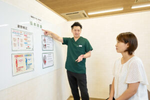 整骨院では、お一人お一人の身体の状態に合わせた運動やストレッチを指導しています。