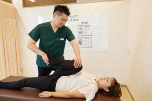膝に負担をかけている体の歪み(O脚、骨盤の傾きなど)をチェックし、全身のバランスを整えます。